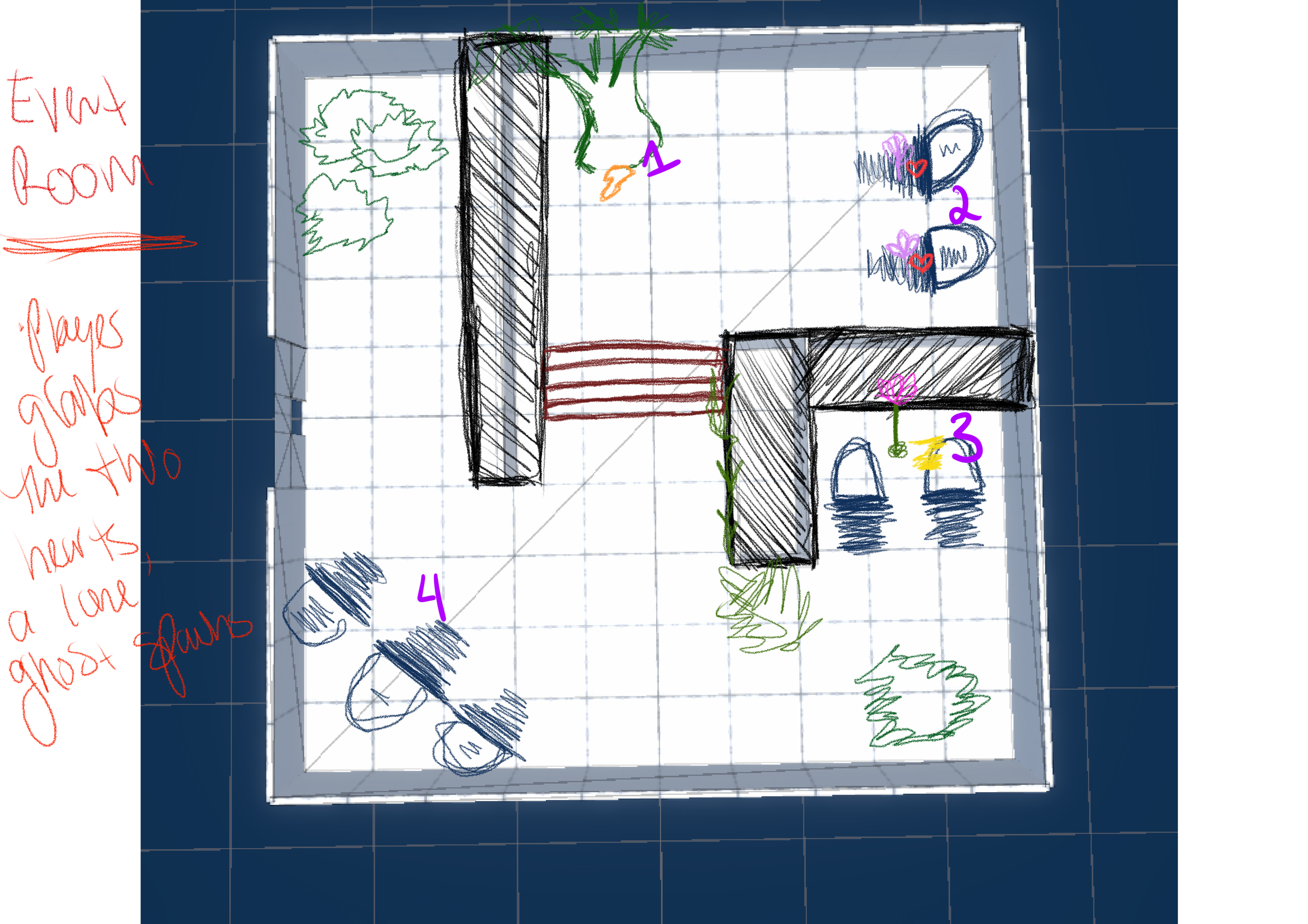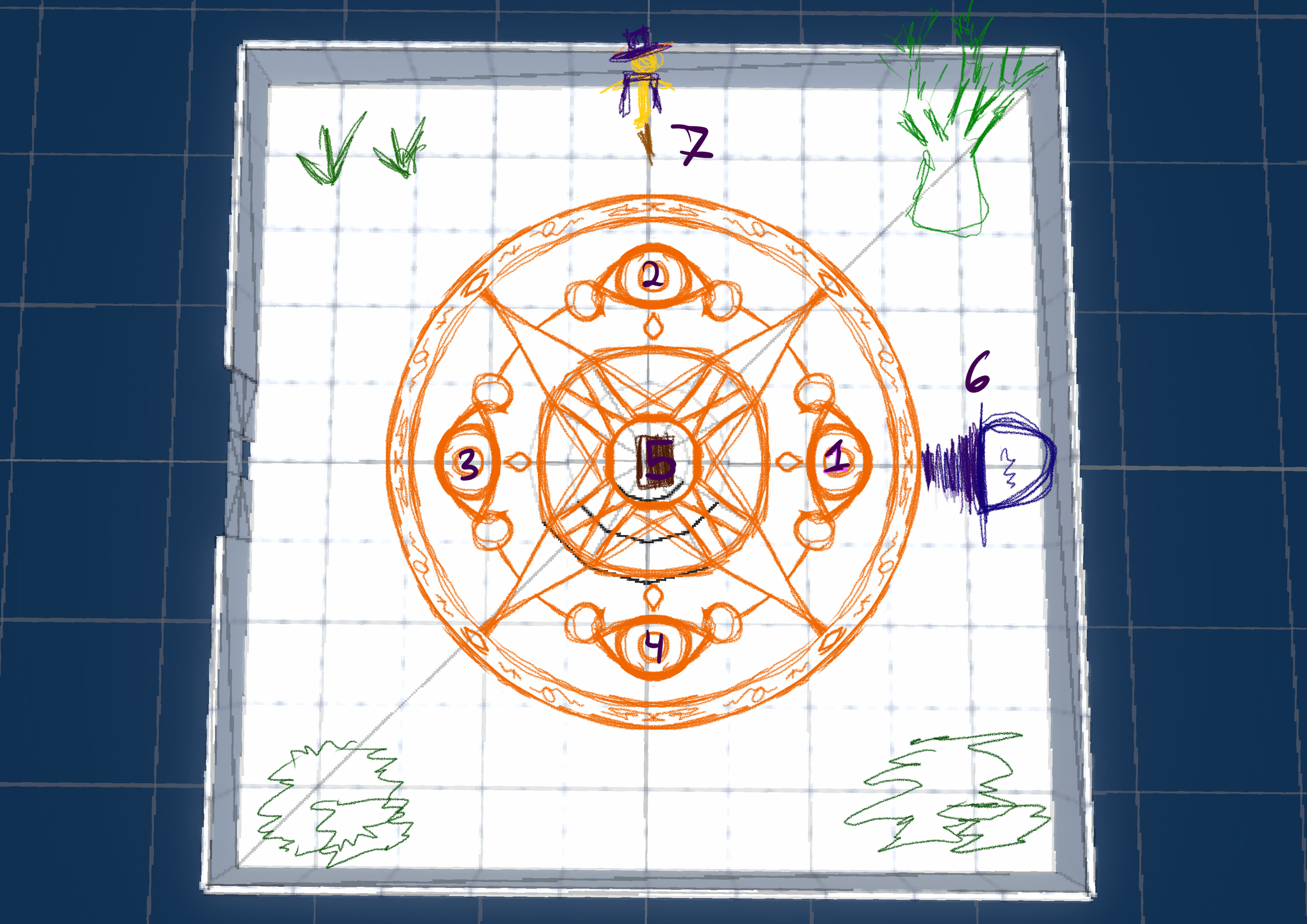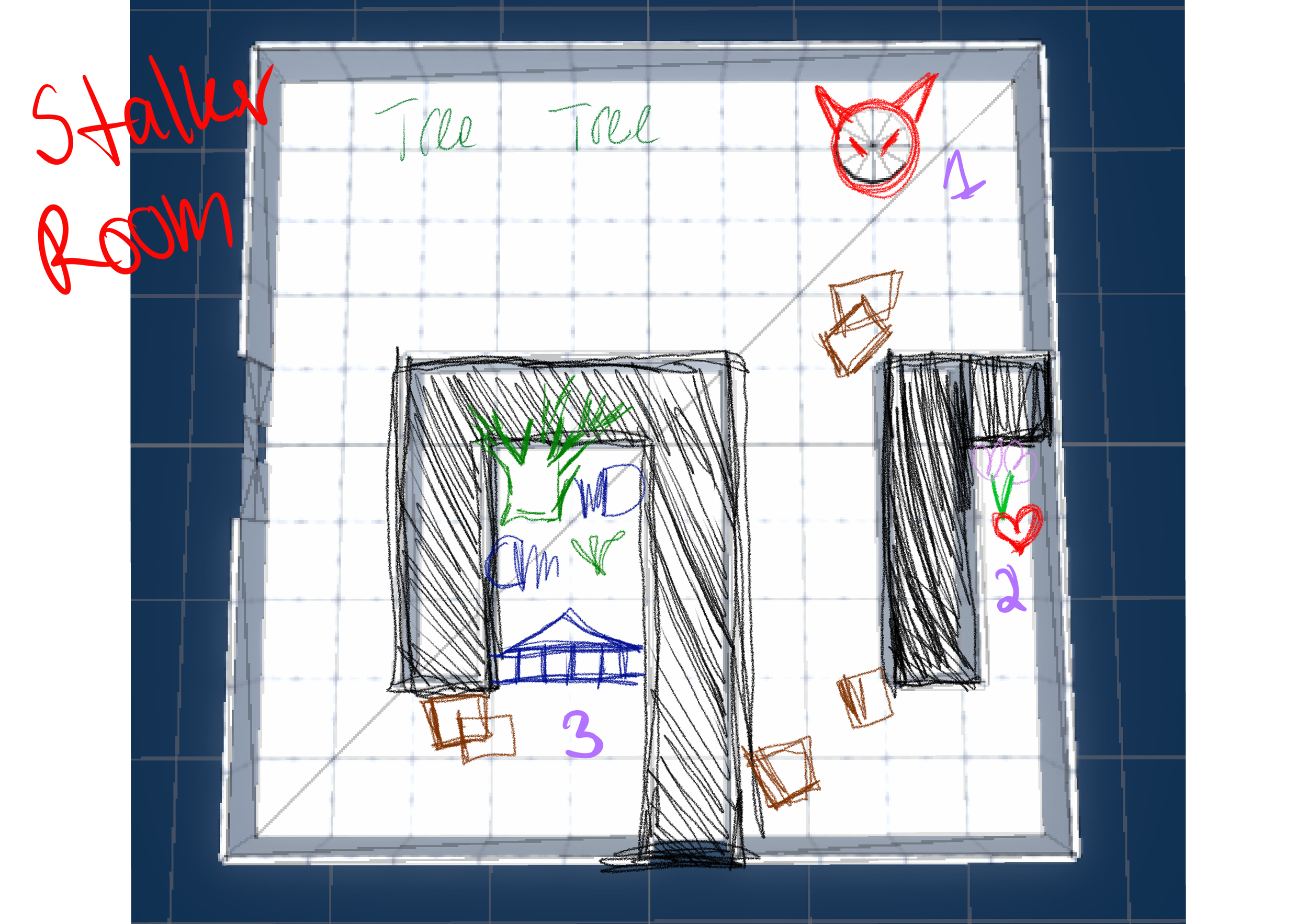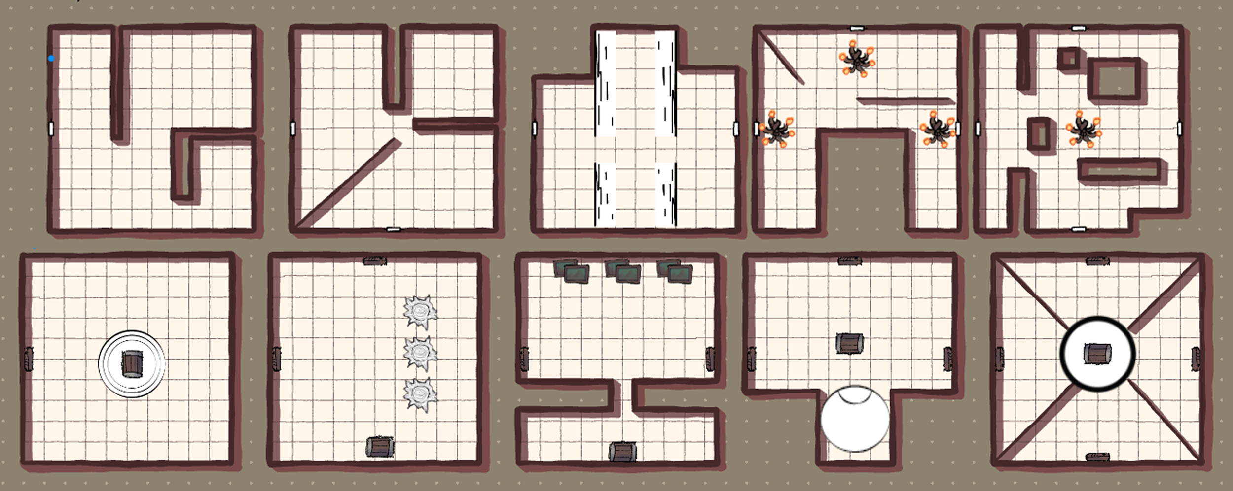 The Level design draws inspiration from The Legend of Zelda and The Binding of Isaac, particularly in its approach to procedural generation and map discovery. Each run generates a unique layout composed of pre-designed room types, including enemy encounters, reward rooms, puzzle spaces, landmarks, dead ends, and exit rooms. Rooms support varying numbers of entrances (one to four), allowing for diverse and interconnected layouts.